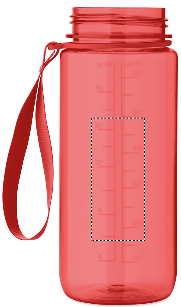 Trinkflasche aus RPET. Integrierter Trinkhalm, weiches Silikonmundstück, motivierende Zeitmarkierung, einhändig zu öffnender Flip-Top-Deckel, Sicherheitsverschluss und Schlaufe. Füllmenge: 700 ml.