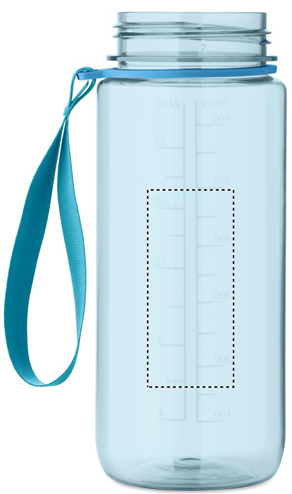 Trinkflasche aus RPET. Integrierter Trinkhalm, weiches Silikonmundstück, motivierende Zeitmarkierung, einhändig zu öffnender Flip-Top-Deckel, Sicherheitsverschluss und Schlaufe. Füllmenge: 700 ml.